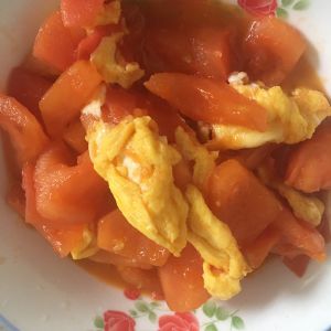煎好鸡蛋,锅中放入西红柿翻炒均匀加入适量白糖,之后加入炒好的鸡蛋,加入适量的盐,翻炒均匀即可出锅了