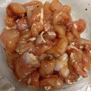 鸡腿剔骨切丁,酱油,生抽,盐,胡椒粉拌匀。