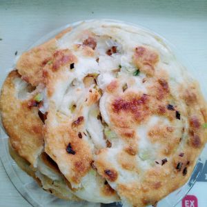 烙饼的时候想酥脆一点,多放点油。中火。火大了就调小一点。看着翻面。