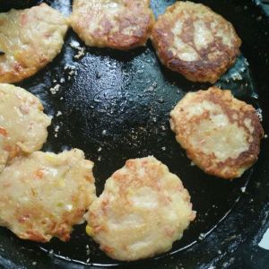 出锅,撒上点芝麻,香煎土豆饼,香醇可口,仅供参考!