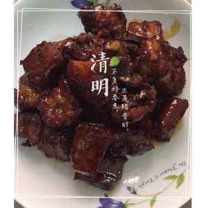 二十分钟后汤没多少了这时候加中火,一边慢慢翻炒排骨收汁,让排骨均匀裹上汤汁,关火,把排骨夹到盘里,再将锅里剩的一点汁淋到排骨上,完成。