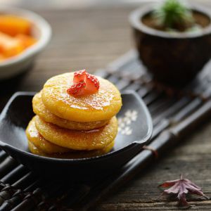 平底锅放少许油,将南瓜饼煎至两面金黄即可,食用时淋上蜂蜜。;