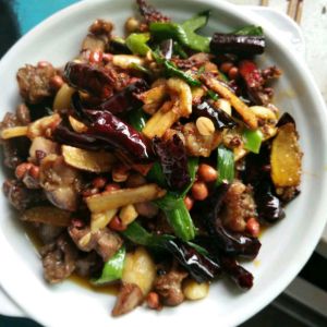 炒配料,先下干辣椒在下花椒颗,还有姜,蒜。进行炒