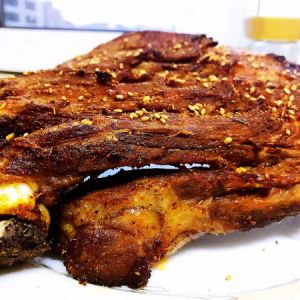 加入适量盐,生抽及切成丝的洋葱,充分按摩羊排,两小时后加入烤肉酱,按摩羊排,再腌制30分钟。
