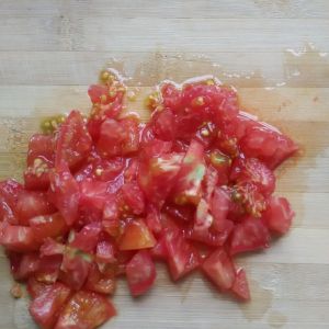 先把茄子下锅炸,变色了,捞出来,在放入西红柿辣椒,炒锅,然后放入调好的料,最后倒入茄子