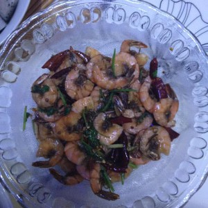 放入大虾'用中火把大虾炒到发红'卷曲'喷入适量料酒'到入生抽'加盐'味精'翻炒