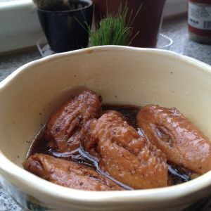 等十五分钟左右就可以看看熟没熟啦,然后连汤带鸡翅都倒出来就可以大快朵颐咯. 如果浇在米饭上吃也不错^_^