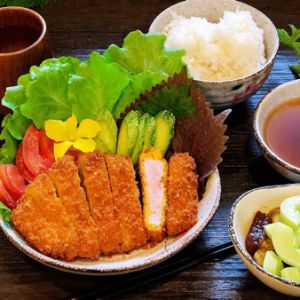 配上热腾腾的米饭,也可以配上煮好的土豆洋葱咖喱,还有淋上半熟炒蛋的。不过还是酥脆的猪排最好吃。趁热开吃吧。