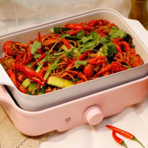 COUSS 卡士CP325多功能料理锅,将火力调至最大,用深锅配件烧一锅开水,待水开翻滚后,加入十克的生姜30克的料酒,倒入洗干净的小龙虾,煮至有泡沫出来(残留的脏东西都能煮出来)。