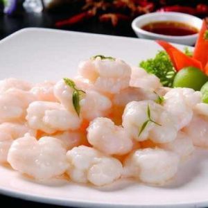 清水烧开下入蛋清腌过的虾仁煮熟