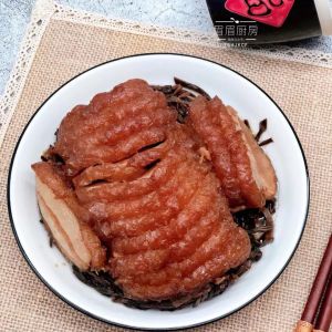 还可以将汤汁滗出来,再倒入锅中煮开,加水淀粉勾芡后,再浇到扣肉上,这样做出来的成品色泽更诱人!