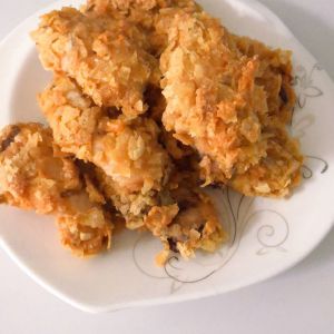 鸡翅先裹面然后粘上蛋液 最后裹上 薯片