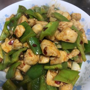 放入尖椒块,炒至断生。出锅。郫县豆瓣酱非常咸,可根据郫县豆瓣酱的量控制咸度,如果不吃太辣的,可以少放豆瓣酱加点盐。