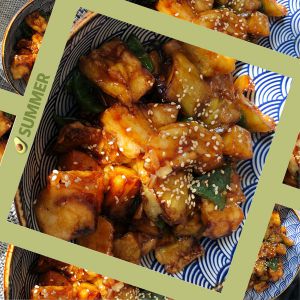热锅。把酱汁倒入。直到看到酱汁冒泡泡了。倒入茄子 土豆 青椒。少了些胡萝卜片做点缀 就这样吧。翻炒几下。出锅 撒点芝麻。就这样。哈哈