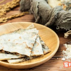 热锅,放入饼,转中火慢慢煎至一面金黄再翻面