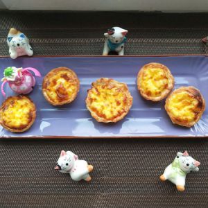 牛奶,白糖,鸡蛋倒入容器,用打蛋器搅拌均匀,把蛋挞液过滤两遍倒入蛋挞模具,八分满