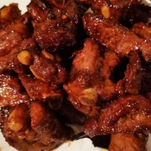 炒锅上火加入油放入冰糖小火炒糖色,炒制糖色发红时,下如排骨翻炒均匀,倒入开水加盐,老抽,大料,香叶,桂平大火烧开后,改小火炖45分钟左右,大火收汁即可