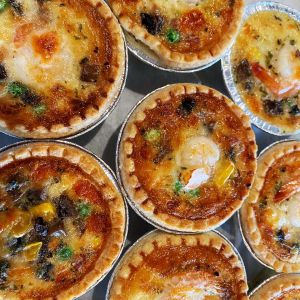 倒入蛋挞皮的3/4位置,撒上小块的马苏里拉奶酪,临时起意又放了虾仁。