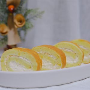 底部放一张新的油纸,把蛋糕体倒转过来。