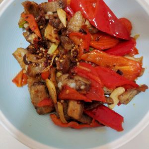 郫县豆瓣酱,葱,姜,蒜,花椒备好,红椒切滚刀块