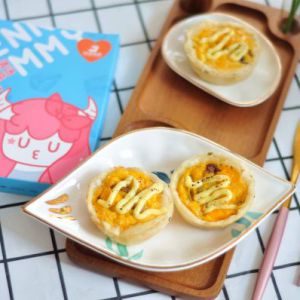 放入烤箱中,170度烘烤13分钟。出炉后,表面挤上蛋黄酱,撒上黑胡椒颗粒。