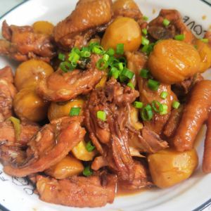 倒入没过鸡肉的清水,放入板栗 小火煮二十分钟