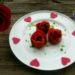 三个一组,重叠好,放上肉馅儿,薄薄一层就行了。