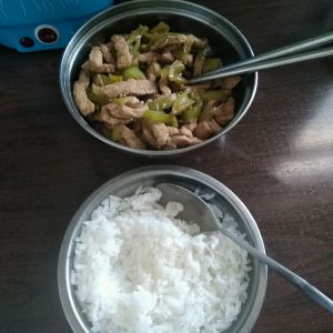把里脊肉放进去加入盐,炒菜料,少许醋翻炒,最后关火加入鸡精,这样味道更鲜美