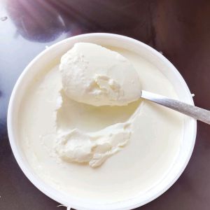 我是放在酸奶机里面过夜的,早上拿出来已经超厚了,放在冰箱两小时冷却,就是酸奶了