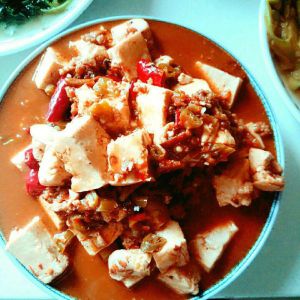 放进豆腐炒,加水,轻微放酱油,加入水直至水滚,生粉勾芡,至汤汁变浓,装盘