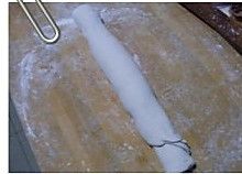 由下往上卷起,分成大小相等的剂子。