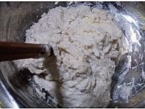 面粉放盆里,分次加水,用筷子把面粉和水搅成软面团,饧发20分钟。