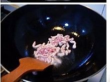 炒锅置火上,放入油,烧至5成热,放上了浆的肉丝,划散至变色