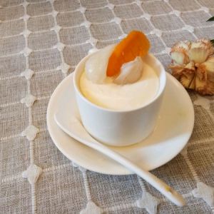 小心倒回容器中,使奶皮上浮,并盖上保鲜膜。