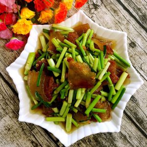 做好的蒜苔炒腊肉,好香啊,赶紧开吃吧!