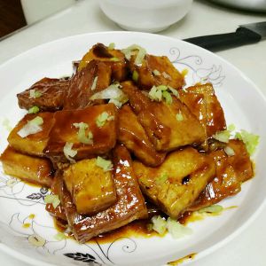盛盘,小葱切末撒在豆腐上。有木有美美哒。