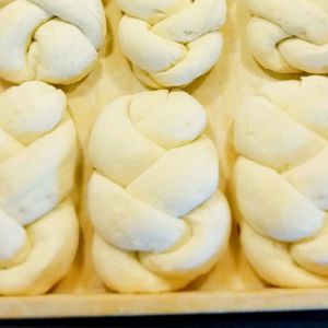 牛奶用微波炉加热到35度左右 将所有食材和成面团 牛奶每袋200毫升 不够添加同等温度清水即可