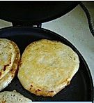 饼铛倒入一点油,转开,加热,手上抹点油,揪下一块面,在手掌摊开,放入馅如同包包子一样收口,放入饼铛中,用手掌按开