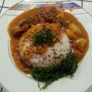 土豆软烂,牛肉也差不多了,放入2块咖喱(汤汁多就放3块)搅拌到黏稠,最后倒入适量的椰奶,搅拌均匀,大功告成!