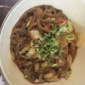 最后下白菜,闷一会儿。倒入蒜末翻炒下,装盘,撒上香菜,大功告成~