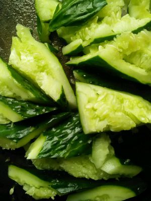 青瓜洗干净,用刀拍裂,切小块