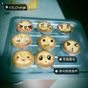 用勺子舀入其中,最后就是放苹果了,所以随意啦,一定到8成满就好,不然就会溢出来!!放入烤箱(已预热),200度20分钟