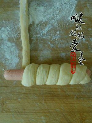 从上往下开始卷,两边接口处捏紧,以防露馅,火腿就不怕啦