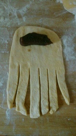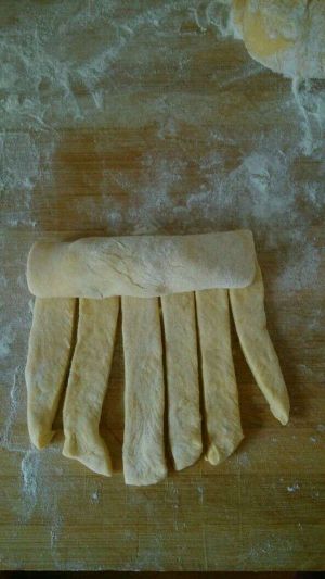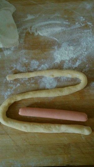 今天我要交大家两种做法,先上第一种包法也可适用于毛毛虫面包包,首先取一块面团擀成长型