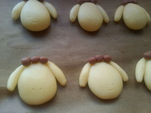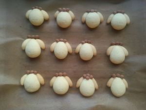 用牙签戳出鼻孔,然后入预热170℃的烤箱烤20分钟左右。