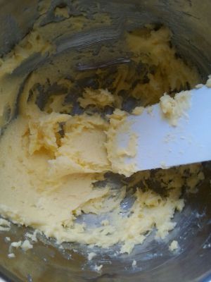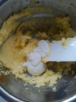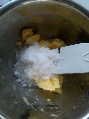 黄油室温下软化,加入糖粉。