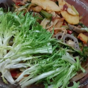 成品如图。为了好看,放了些苦菊上去,既爽口,又去火。