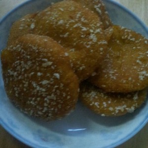 把油倒入锅中,烧热后,南瓜饼再入锅!小火炸至金黄,捞起!