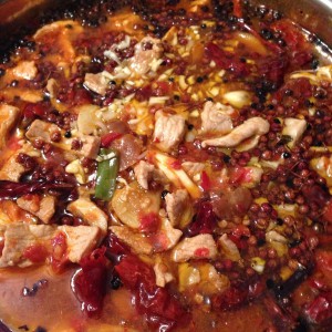 水开后把肉片和汤全部盛出,将蒜末铺上,烧入热油,再放入一把麻椒,出香味后倒在蒜末上即可大功告成。