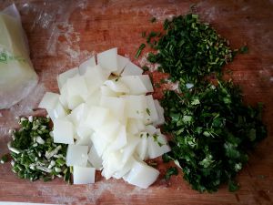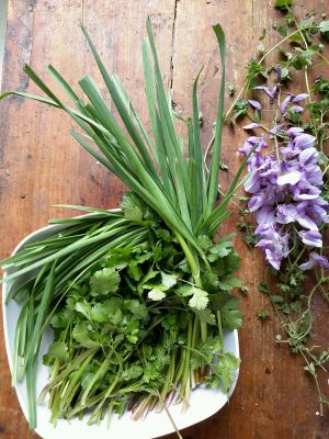 香菜,蒜苗洗净后备用~